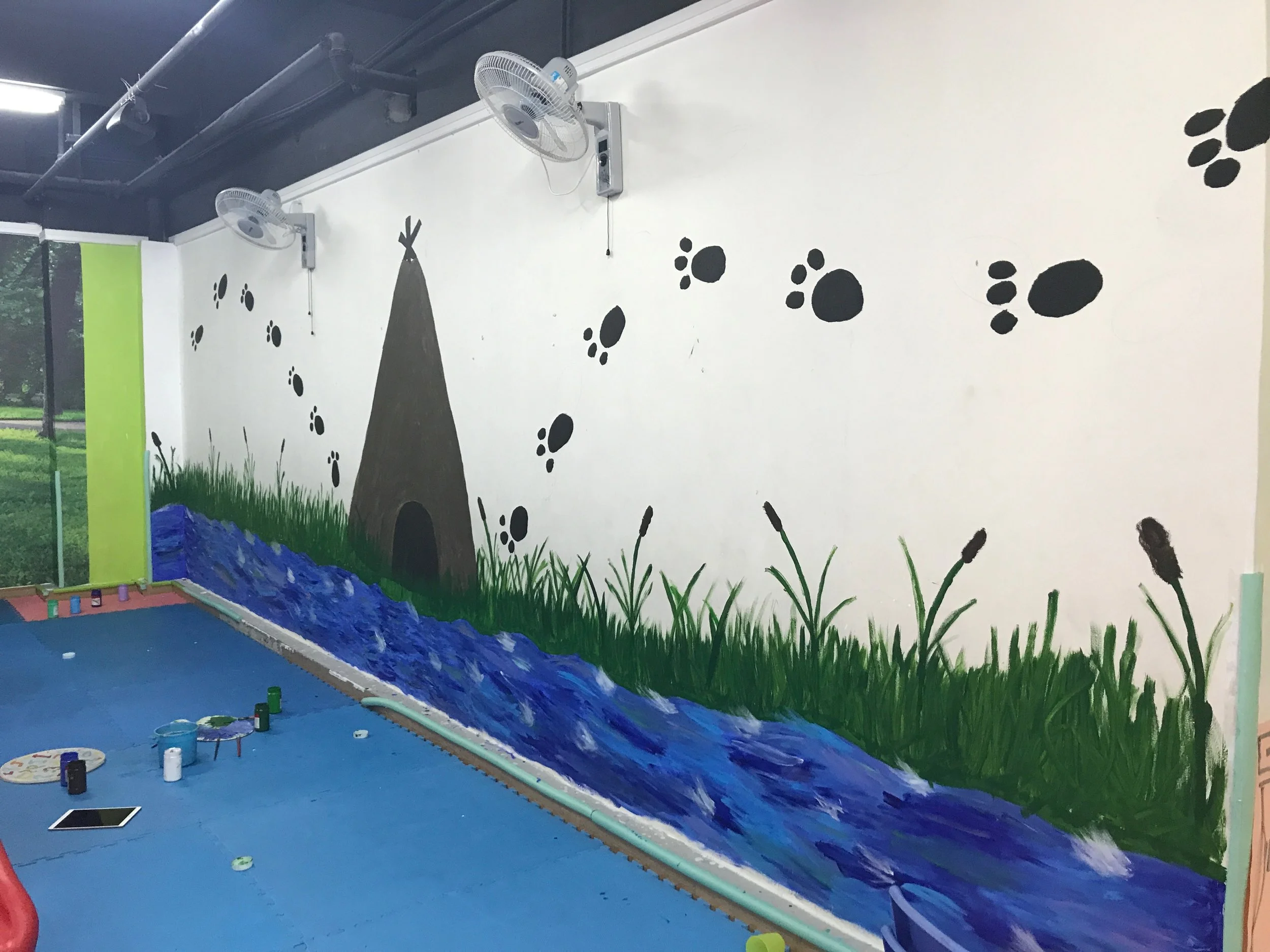 I also painted a mural on the wall of the kindergarten play area. It was really fun and didn't take that much time in actuality. It even looks decent!